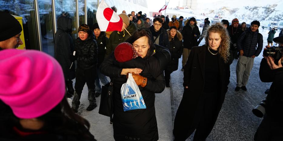 - Jeg er her for at formidle, at Vivian har rejst til USA på vores vegne, for at gøre det klart, at Grønland tilhører grønlænderne, og for at vise, at hun har opbakning fra alle. Følelserne er meget stærke – stolthed, lyst til at græde og en stærk følelse af fællesskab. Vi oplever mange følelser. Vi er rørte, sagde han til KNR.