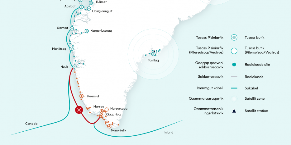 Søkablet syd for Nuuk er den forbindelse, der går mod Island og videre til Europa og Danmark. Og når den er ved at blive repareret med langsom forbindelse til følge, er resten af landet ekstra afhængige af kablet i Nordamerika.